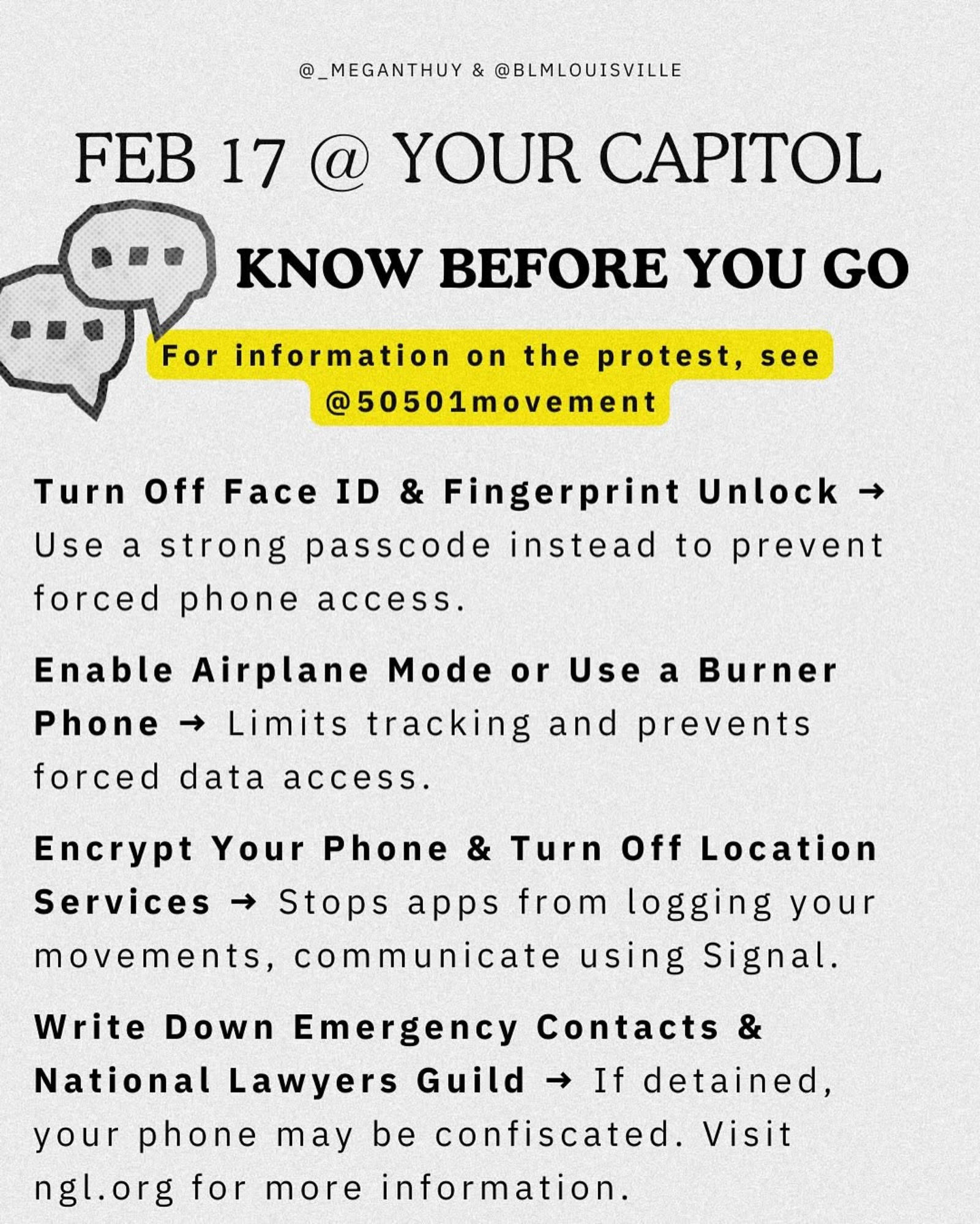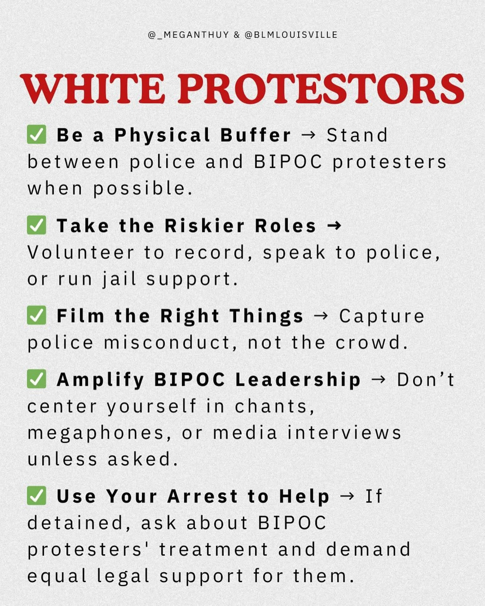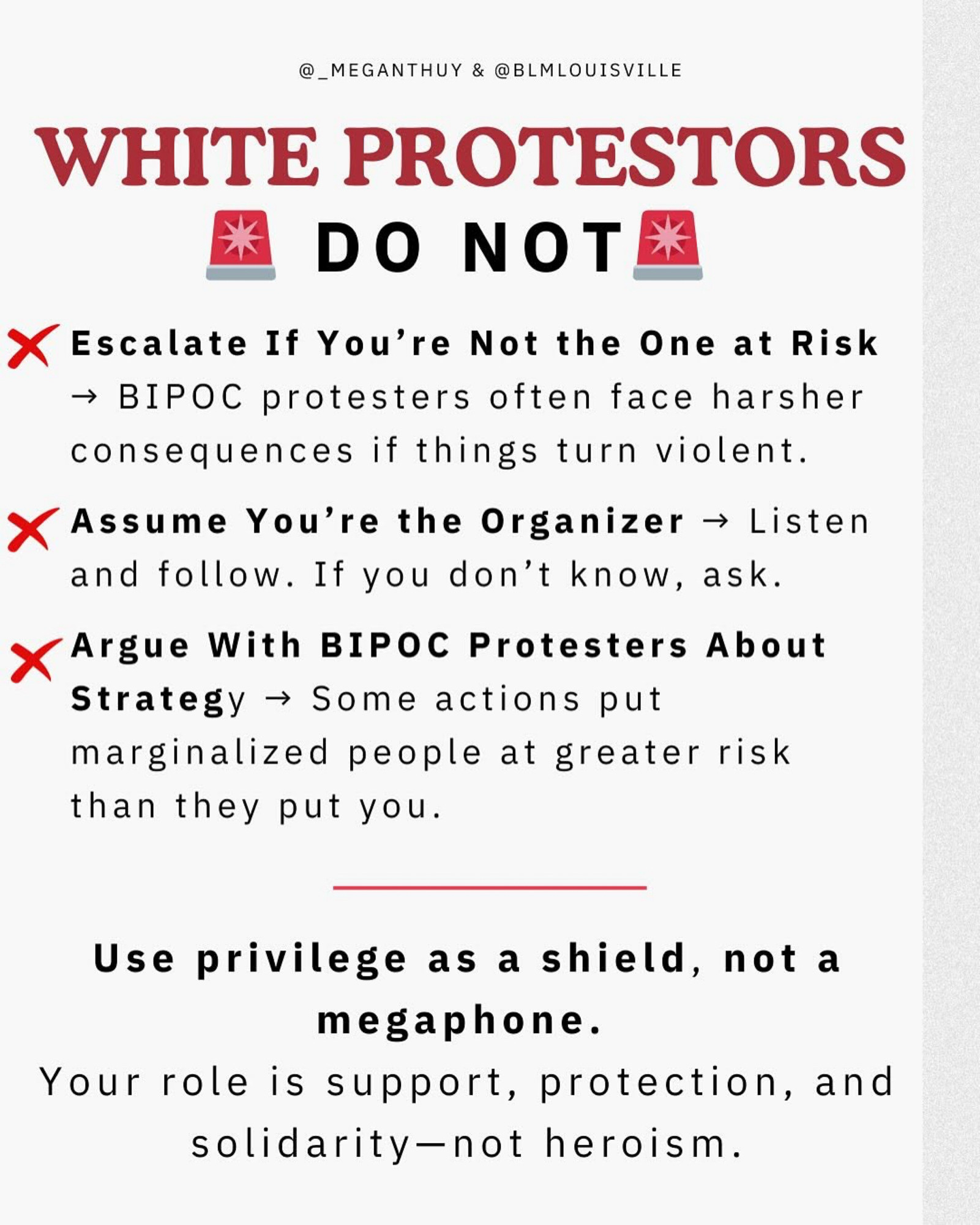 Just picked these up via @thejenniwren.teamlh.social on Bluesky. They are for today's Feb 17th rally in D.C., but seem like generally good advice (specifically for white people).